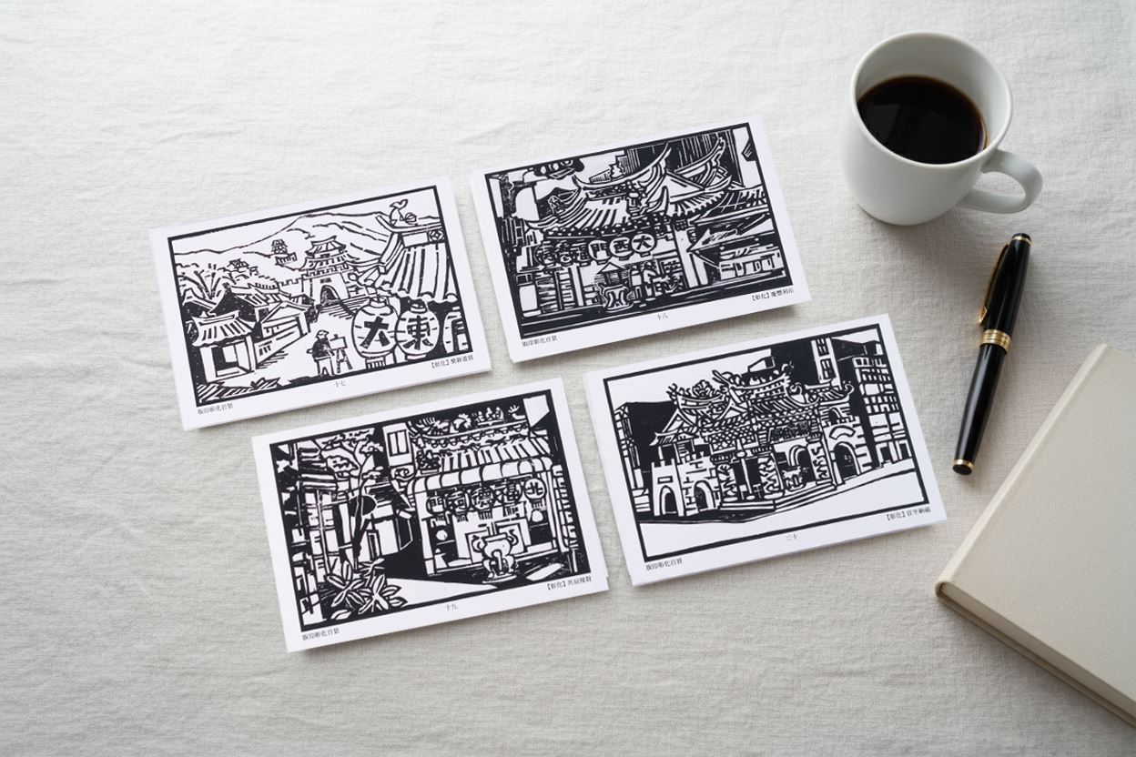 以木刻版畫與孔版印刷為基礎,重現彰化舊城街道風貌與歷史文化脈絡。